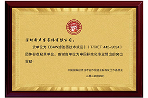 4月 新聲為《BAW濾波器技術(shù)規(guī)范》(T/CIET 442-2024)團(tuán)體標(biāo)準(zhǔn)起草單位