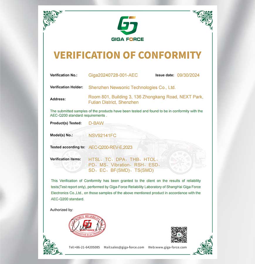 10月 TC-SAW和BAW系列多款濾波器產(chǎn)品通過(guò)了AEC-Q200車規(guī)認(rèn)證